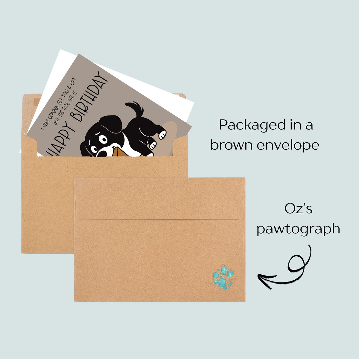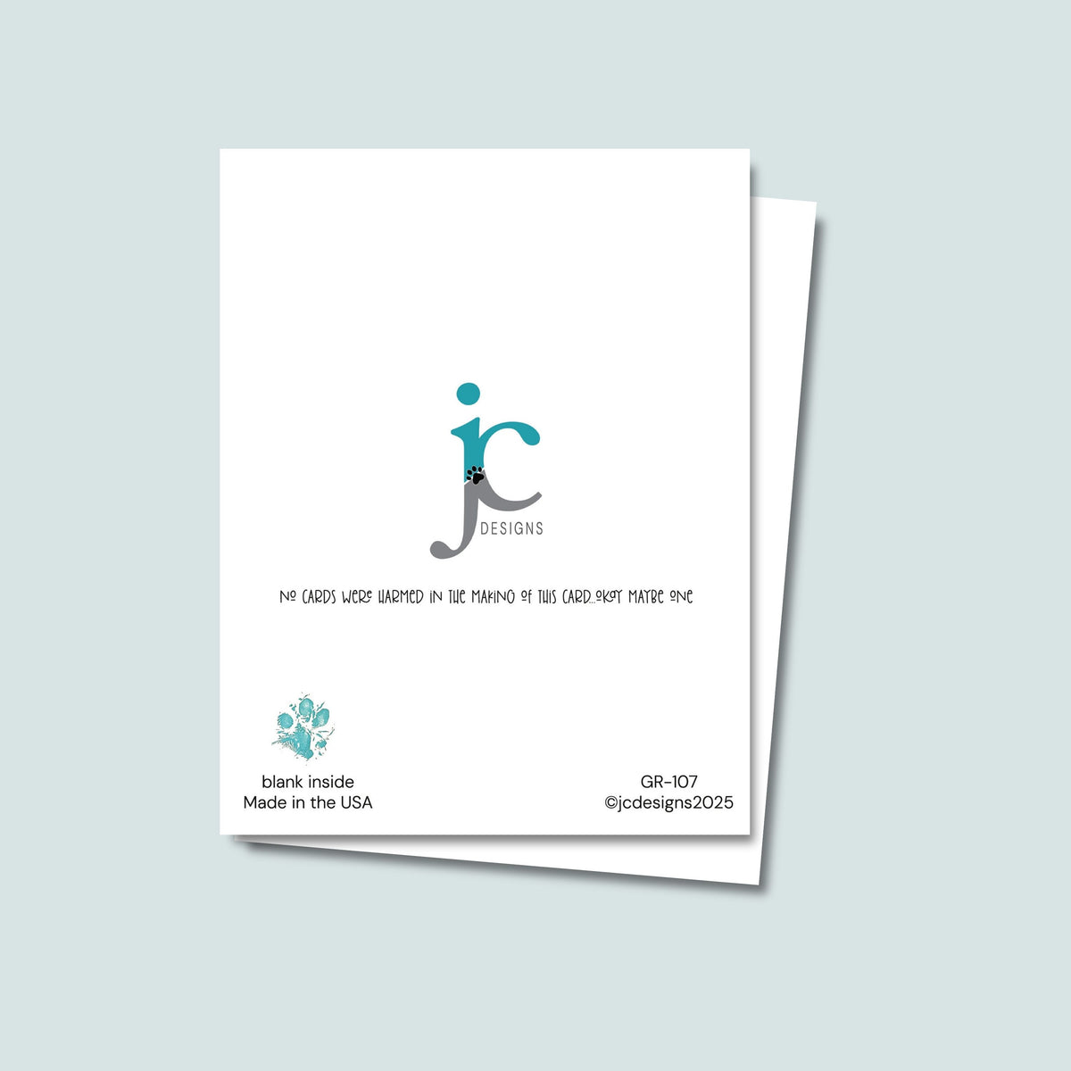 This funny greeting card features original hand-drawn artwork and is perfect for a pet lover's birthday. Measuring 4.25" x 5.5".  It is blank inside so you can personalize your message and includes a unique tagline on the back. Printed in the USA on high-quality cardstock and comes with a matching envelope.